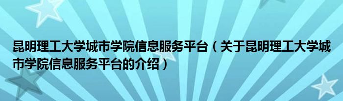大家好,今天小乐来为大家解答以上的问题。昆明理工大学城市学院信息服务平台,关于昆明理工大学城市学院信息服务平台的介绍很多人还不知道,现在让我们一起来看看吧!