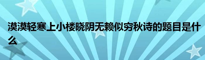 关于漠漠轻寒上小楼晓阴无赖似穷秋诗的题目是什么这个很多人还不知道,今天菲菲来为大家解答以上的问题,现在让我们一起来看看吧!