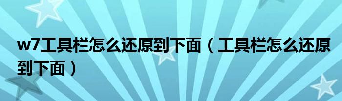 大家好,小晋来为大家解答以下问题,关于w7工具栏怎么还原到下面,工具栏怎么还原到下面很多人还不知道,今天让我们一起来看看吧!