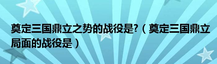 关于奠定三国鼎立之势的战役是?,奠定三国鼎立局面的战役是这个很多人还不知道,今天菲菲来为大家解答以上的问题,现在让我们一起来看看吧!
