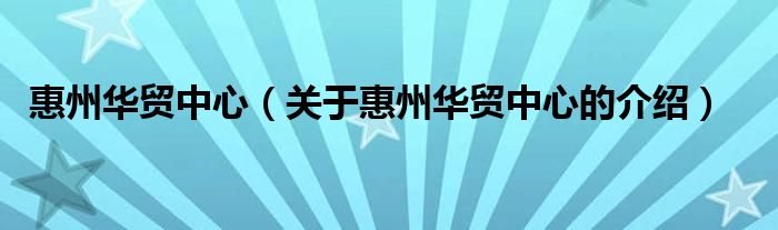 大家好,小都来为大家解答以上的问题。惠州华贸中心,关于惠州华贸中心的介绍很多人还不知道,现在让我们一起来看看吧!