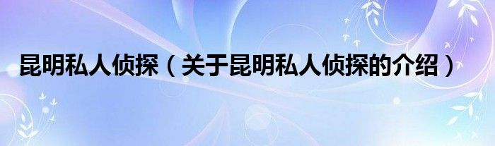 大家好,小都来为大家解答以上的问题。昆明私人侦探,关于昆明私人侦探的介绍很多人还不知道,现在让我们一起来看看吧!