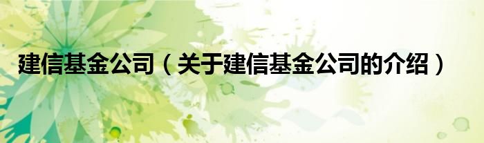 大家好,小都来为大家解答以上的问题。建信基金公司,关于建信基金公司的介绍很多人还不知道,现在让我们一起来看看吧!