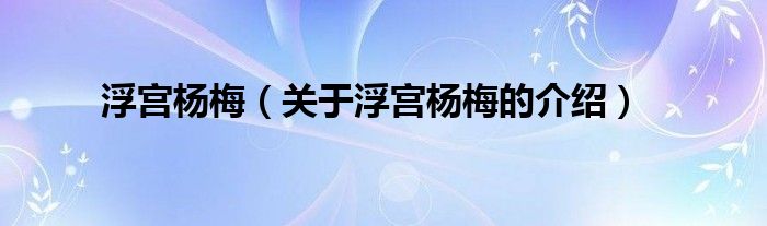 浮宫杨梅(关于浮宫杨梅的介绍)