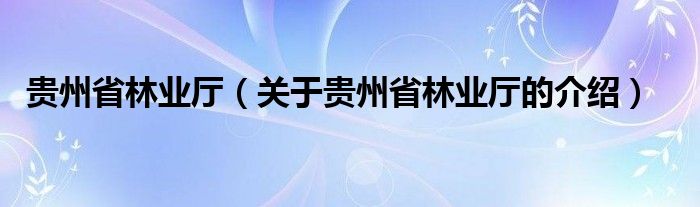 贵州省林业厅(关于贵州省林业厅的介绍)