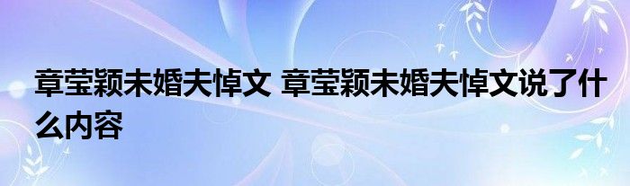 大家好.我是互联百科的羽儿,现在为大家解决以上章莹颖未婚夫悼文 章莹颖未婚夫悼文说了什么内容的问题.