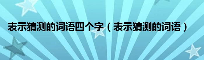 大家好,小晋来为大家解答以下问题,关于表示猜测的词语四个字,表示猜测的词语很多人还不知道,今天让我们一起来看看吧!