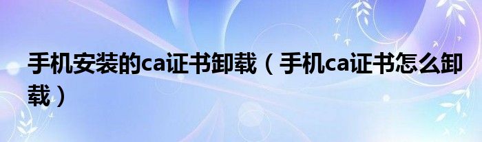 手机安装的ca证书卸载(手机ca证书怎么卸载)