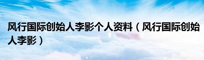 关于风行国际创始人李影个人资料,风行国际创始人李影这个很多人还不知道,今天菲菲来为大家解答以上的问题,现在让我们一起来看看吧!