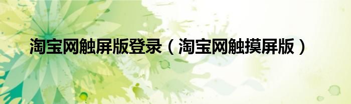 大家好,小晋来为大家解答以下问题,关于淘宝网触屏版登录,淘宝网触摸屏版很多人还不知道,今天让我们一起来看看吧!