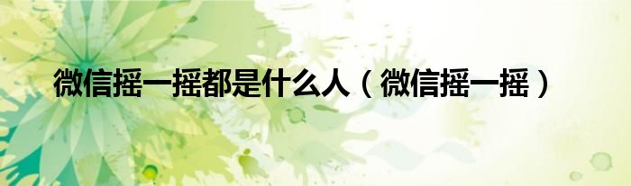 大家好,小晋来为大家解答以下问题,关于微信摇一摇都是什么人,微信摇一摇很多人还不知道,今天让我们一起来看看吧!