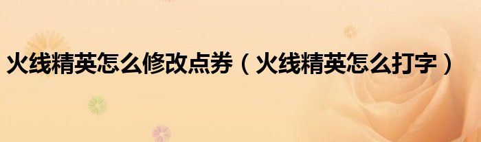 关于火线精英怎么修改点券,火线精英怎么打字这个很多人还不知道,今天菲菲来为大家解答以上的问题,现在让我们一起来看看吧!