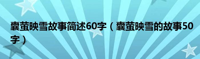 关于囊萤映雪故事简述60字,囊萤映雪的故事50字这个很多人还不知道,今天菲菲来为大家解答以上的问题,现在让我们一起来看看吧!