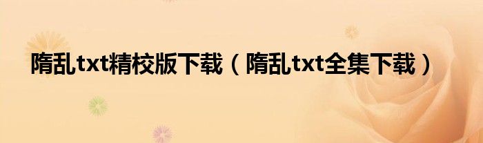 关于隋乱txt精校版下载,隋乱txt全集下载这个很多人还不知道,今天菲菲来为大家解答以上的问题,现在让我们一起来看看吧!