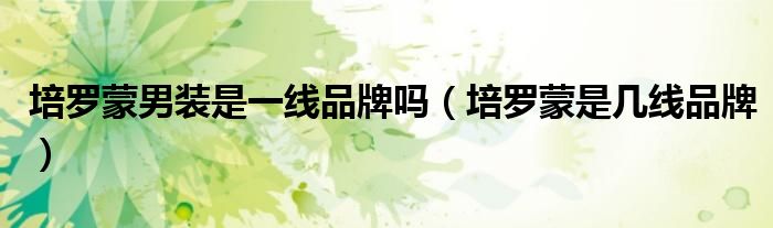 培罗蒙男装是一线品牌吗(培罗蒙是几线品牌)