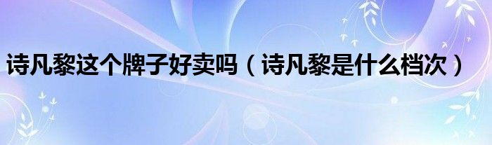 诗凡黎这个牌子好卖吗(诗凡黎是什么档次)