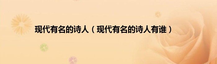 1、 现代诗人有徐志摩、戴望舒、艾青、闻一多、沈浩波、袁、老向、等。所谓现代诗人,是指创作现代诗歌作品的作家。现代诗是白话诗的一种,相对于古诗而言。