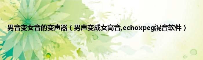 大家好,综合小编来为大家讲解下男音变女音的变声器,男声变成女高音,echoxpeg混音软件这个很多人还不知道,现在让我们一起来看看吧!