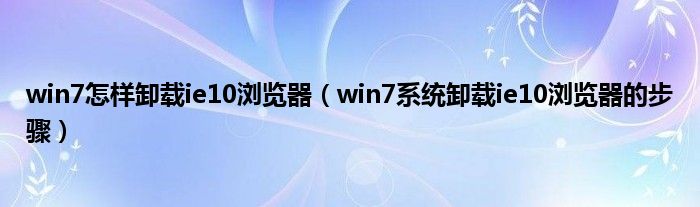 大家好,综合小编来为大家讲解下win7怎样卸载ie10浏览器,win7系统卸载ie10浏览器的步骤这个很多人还不知道,现在让我们一起来看看吧!