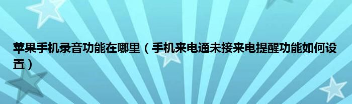 大家好,综合小编来为大家讲解下苹果手机录音功能在哪里,手机来电通未接来电提醒功能如何设置这个很多人还不知道,现在让我们一起来看看吧!