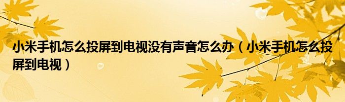 关于小米手机怎么投屏到电视没有声音怎么办,小米手机怎么投屏到电视这个很多人还不知道,今天菲菲来为大家解答以上的问题,现在让我们一起来看看吧!