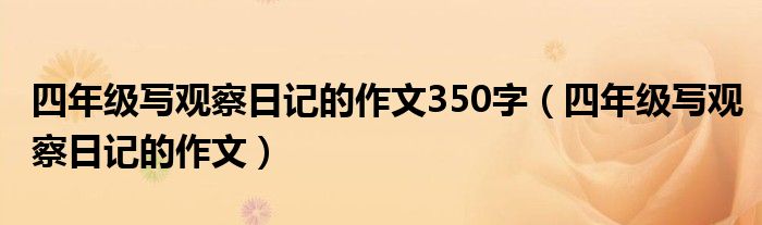 关于四年级写观察日记的作文350字,四年级写观察日记的作文这个很多人还不知道,今天菲菲来为大家解答以上的问题,现在让我们一起来看看吧!