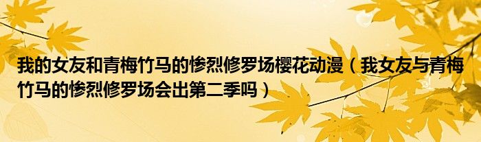 关于我的女友和青梅竹马的惨烈修罗场樱花动漫,我女友与青梅竹马的惨烈修罗场会出第二季吗这个很多人还不知道,今天菲菲来为大家解答以上的问题,现在让我们一起来看看吧!