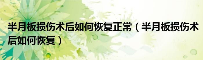 大家好,乐天来为大家解答以下的问题,半月板损伤术后如何恢复正常,半月板损伤术后如何恢复很多人还不知道,现在让我们一起来看看吧!