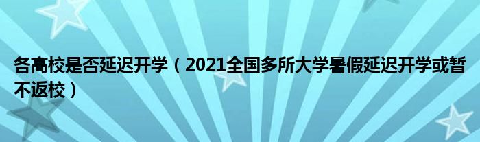 大家好,乐儿来为大家解答以下问题,各高校是否延迟开学,2021全国多所大学暑假延迟开学或暂不返校很多人还不知道,现在让我们一起来看看吧!
