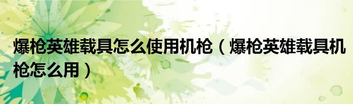 关于爆枪英雄载具怎么使用机枪,爆枪英雄载具机枪怎么用这个很多人还不知道,今天菲菲来为大家解答以上的问题,现在让我们一起来看看吧!