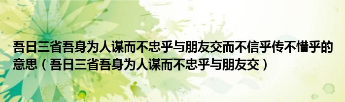 关于吾日三省吾身为人谋而不忠乎与朋友交而不信乎传不惜乎的意思,吾日三省吾身为人谋而不忠乎与朋友交这个很多人还不知道,今天菲菲来为大家解答以上的问题,现在让我们一起来看看吧!