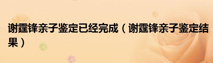 1、事隔多年谢霆锋做亲子鉴定?结果让全家人沉默 不知道为什么张柏芝和离婚后,消息从没有消停过:张柏芝和谢霆锋复合,王菲谢霆锋各种秀恩爱,各种被传分手。