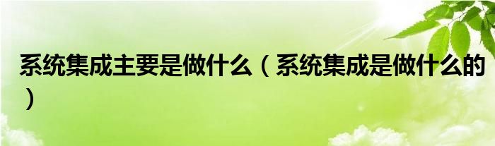 关于系统集成主要是做什么,系统集成是做什么的这个很多人还不知道,今天菲菲来为大家解答以上的问题,现在让我们一起来看看吧!