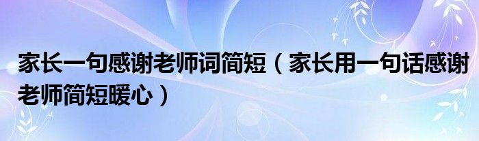 大家好,乐儿来为大家解答以下问题,家长一句感谢老师词简短,家长用一句话感谢老师简短暖心很多人还不知道,现在让我们一起来看看吧!