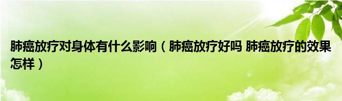 大家好,乐天来为大家解答以下的问题,肺癌放疗对身体有什么影响,肺癌放疗好吗 肺癌放疗的效果怎样很多人还不知道,现在让我们一起来看看吧!