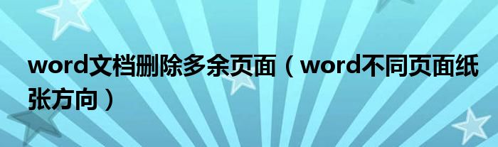 关于word文档删除多余页面,word不同页面纸张方向这个很多人还不知道,今天菲菲来为大家解答以上的问题,现在让我们一起来看看吧!