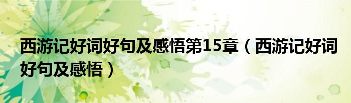 关于西游记好词好句及感悟第15章,西游记好词好句及感悟这个很多人还不知道,今天菲菲来为大家解答以上的问题,现在让我们一起来看看吧!