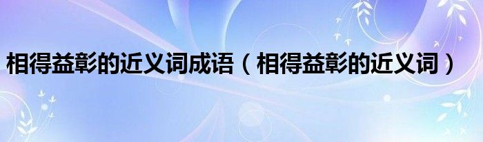 大家好,小联来为大家解答以上的问题。相得益彰的近义词成语,相得益彰的近义词这个很多人还不知道,现在让我们一起来看看吧!