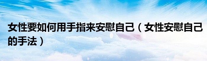 大家好,我是小科,我来为大家解答以上问题。女性要如何用手指来安慰自己,女性安慰自己的手法很多人还不知道,现在让我们一起来看看吧!