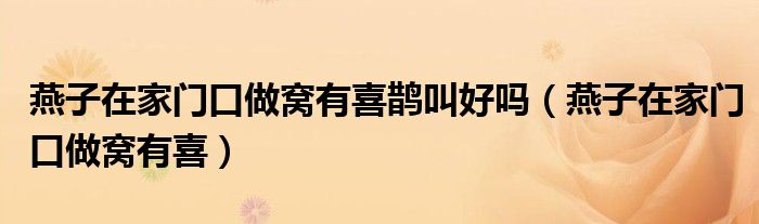 大家好,我是小科,我来为大家解答以上问题。燕子在家门口做窝有喜鹊叫好吗,燕子在家门口做窝有喜很多人还不知道,现在让我们一起来看看吧!