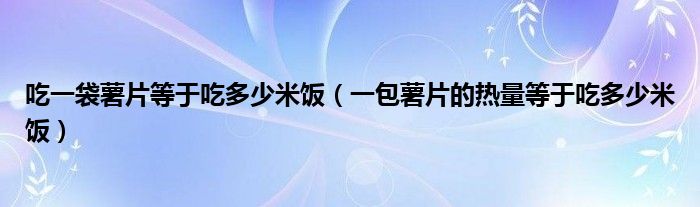 大家好,小夏来为大家讲解下。吃一袋薯片等于吃多少米饭,一包薯片的热量等于吃多少米饭很多人还不知道,现在让我们一起来看看吧!