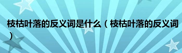 大家好,我是小科,我来为大家解答以上问题。枝枯叶落的反义词是什么,枝枯叶落的反义词很多人还不知道,现在让我们一起来看看吧!