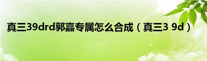大家好,我是小科,我来为大家解答以上问题。真三39drd郭嘉专属怎么合成,真三3 9d很多人还不知道,现在让我们一起来看看吧!