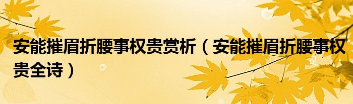大家好,小联来为大家解答以上的问题。安能摧眉折腰事权贵赏析,安能摧眉折腰事权贵全诗这个很多人还不知道,现在让我们一起来看看吧!