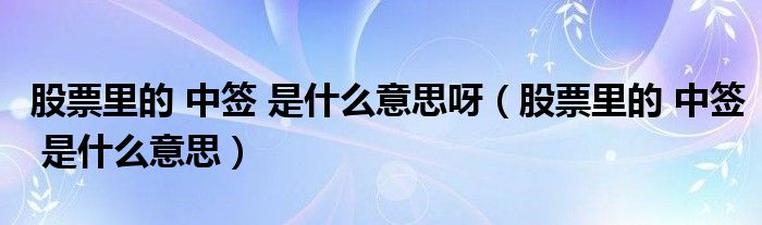 大家好,小联来为大家解答以上的问题。股票里的 中签 是什么意思呀,股票里的 中签 是什么意思这个很多人还不知道,现在让我们一起来看看吧!