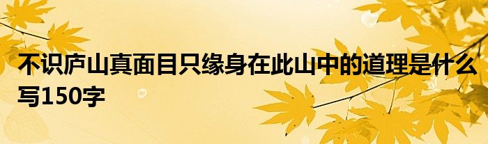 大家好,小联来为大家解答以上的问题。不识庐山真面目只缘身在此山中的道理是什么写150字这个很多人还不知道,现在让我们一起来看看吧!