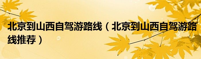 大家好,小联来为大家解答以上的问题。北京到山西自驾游路线,北京到山西自驾游路线推荐这个很多人还不知道,现在让我们一起来看看吧!