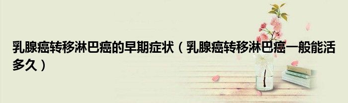 大家好,乐天来为大家解答以下的问题,乳腺癌转移淋巴癌的早期症状,乳腺癌转移淋巴癌一般能活多久很多人还不知道,现在让我们一起来看看吧!