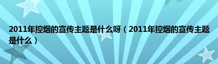 大家好,小联来为大家解答以上的问题。2011年控烟的宣传主题是什么呀,2011年控烟的宣传主题是什么这个很多人还不知道,现在让我们一起来看看吧!