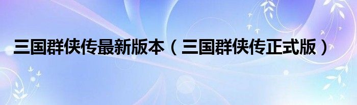 大家好,我是小科,我来为大家解答以上问题。三国群侠传最新版本,三国群侠传正式版很多人还不知道,现在让我们一起来看看吧!